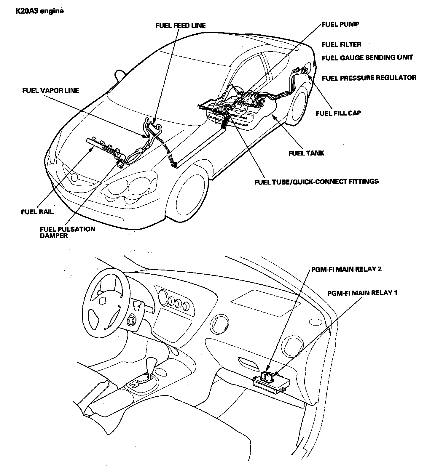 Fuel Supply System - Component Location Index (K20A3 Engine):
