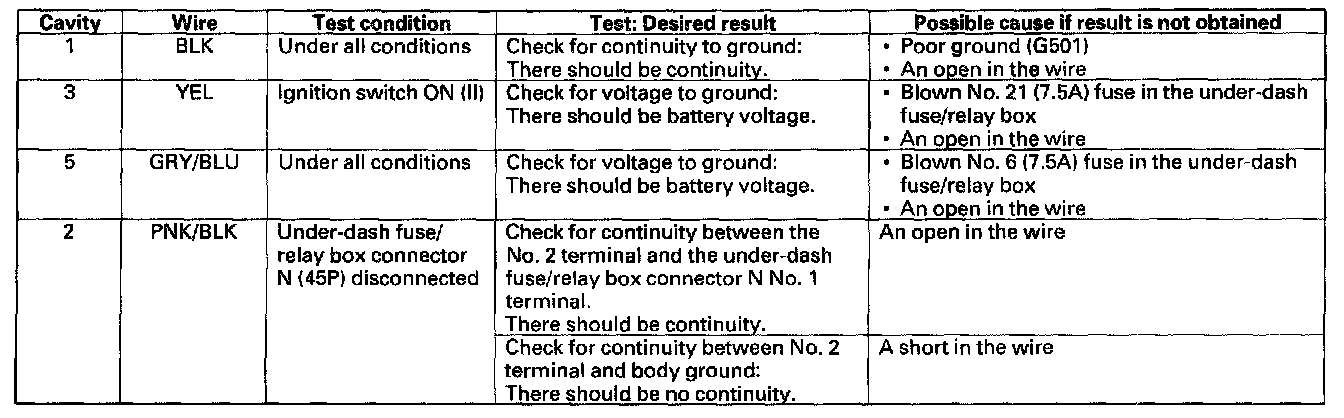 4. With the connector still disconnected, make these input tests at the connector.