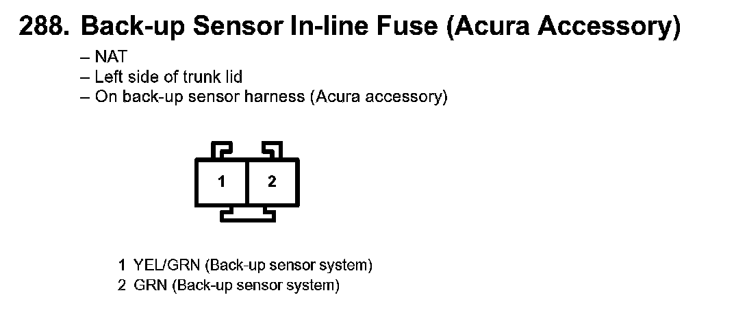 288. Back-up Sensor In-line Fuse (Acura Accessory):