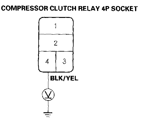 4. Measure the voltage between the No.1 terminal of the compressor clutch relay 4P socket and body ground.