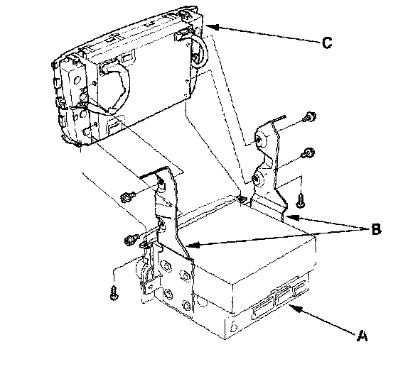 2. Remove the self-tapping screws and the audio unit (A) and bracket (B) from the display panel control unit (C).