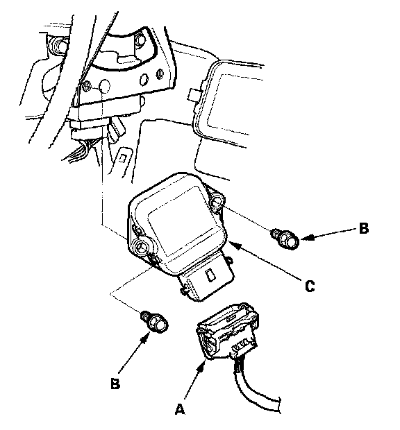 3. Remove the bolts (B), and the throttle actuator control module (C).