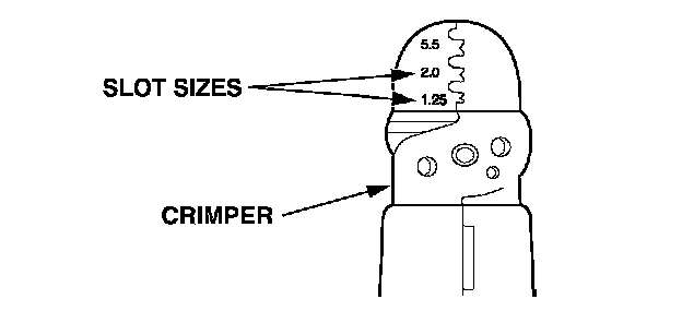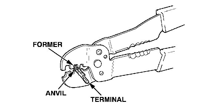 4. Position the terminal in the crimping tool slot with the solid portion of the terminal toward the anvil and the open section toward the former.