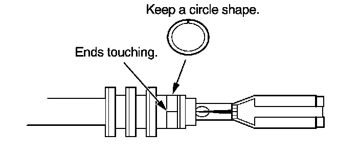 3. Strip the insulation off the end of the wire so the wire fits in the new terminal as shown. (If the wire has a wire seal, replace it with a new one from the kit.)