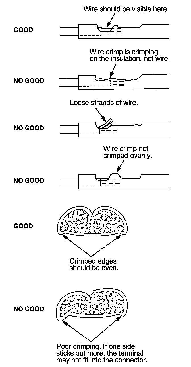 8. Inspect the quality of the wire crimp. If it has any of the above mentioned NO GOOD crimps, cut it off and start over.