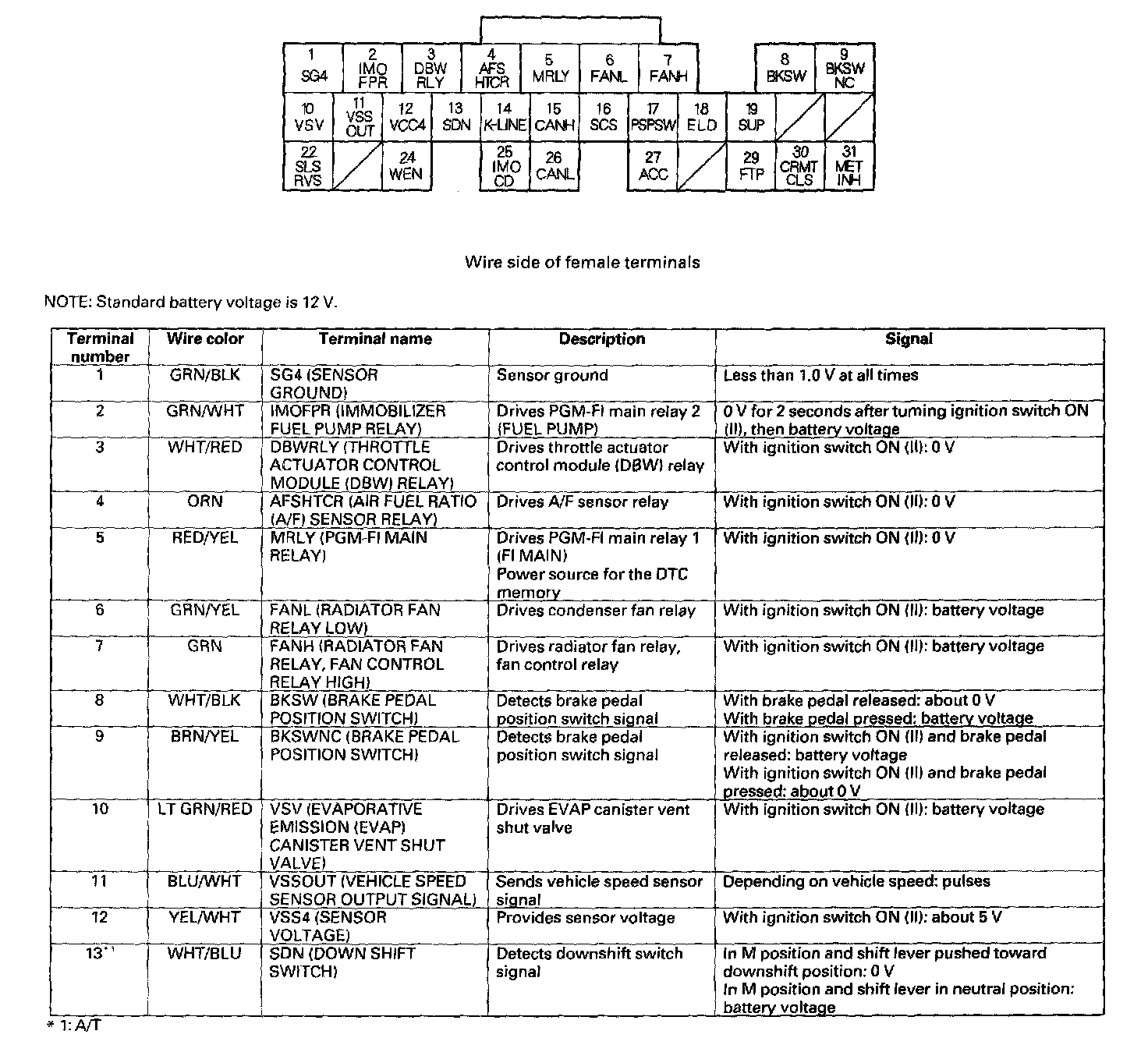 ECM/PCM Inputs And Outputs At Connector A (31P) Part 1: