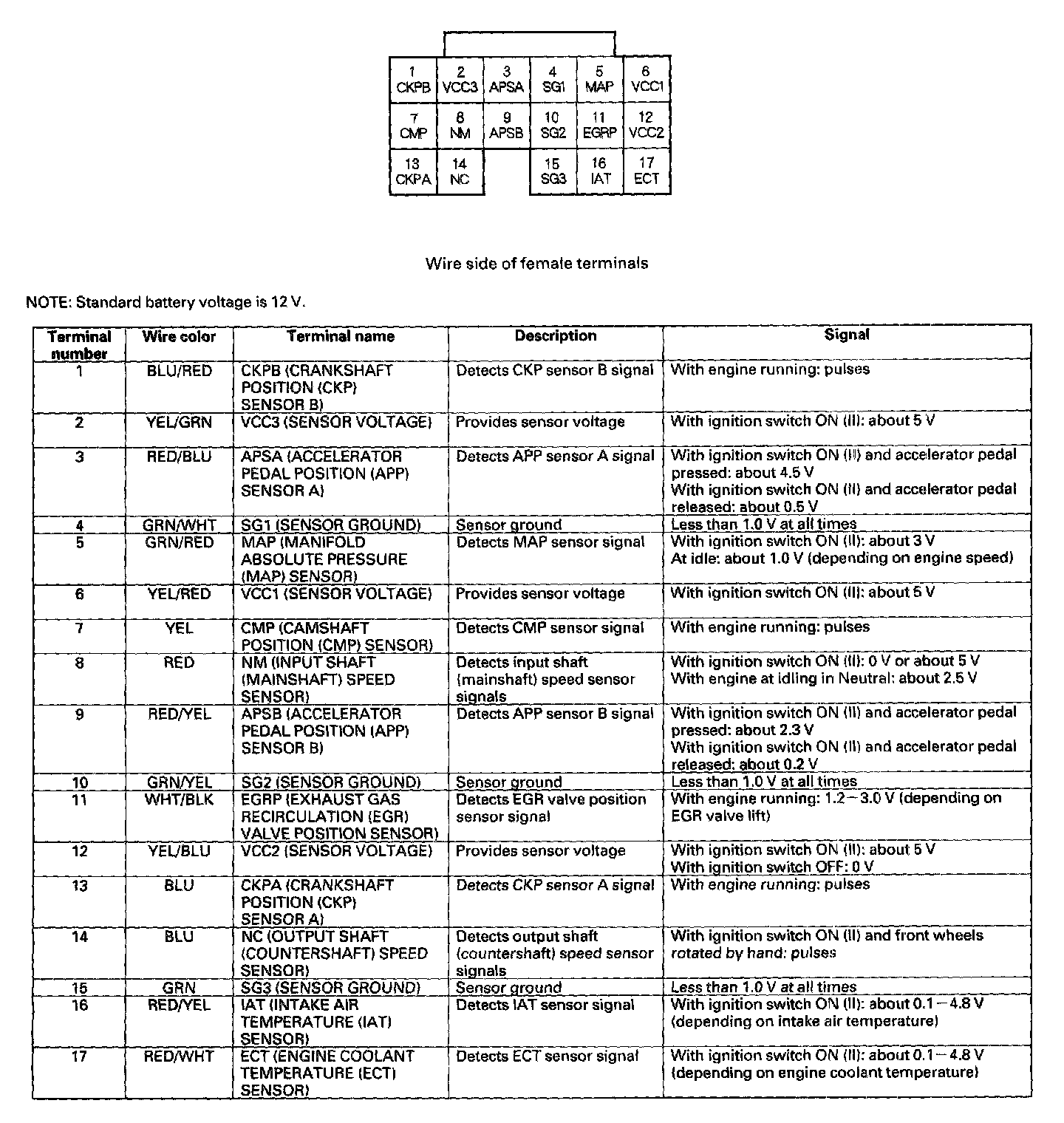 ECM/PCM Inputs And Outputs At Connector D (17P):
