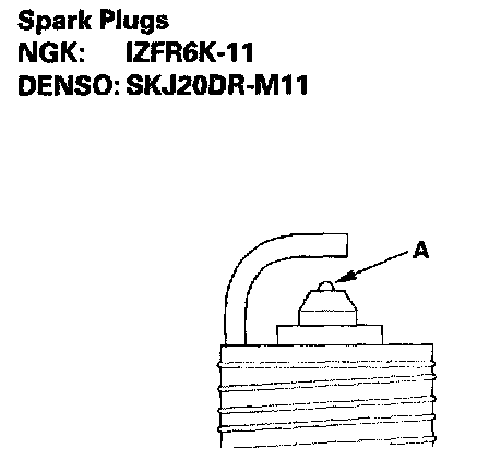2. Do not adjust the gap (A) of iridium tip plugs ; replace the spark plug if the gap is out of specification.