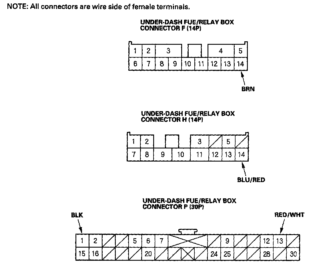 NOTE: All connectors are wire side of female terminals.