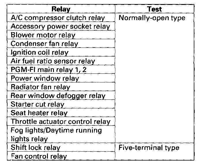 Power Relay TestUse this chart to identify the type of relay, then do the test listed for it.