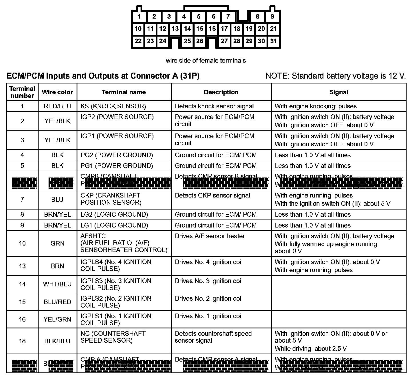 ECM/PCM Inputs And Outputs At Connector A (31P) Part 1: