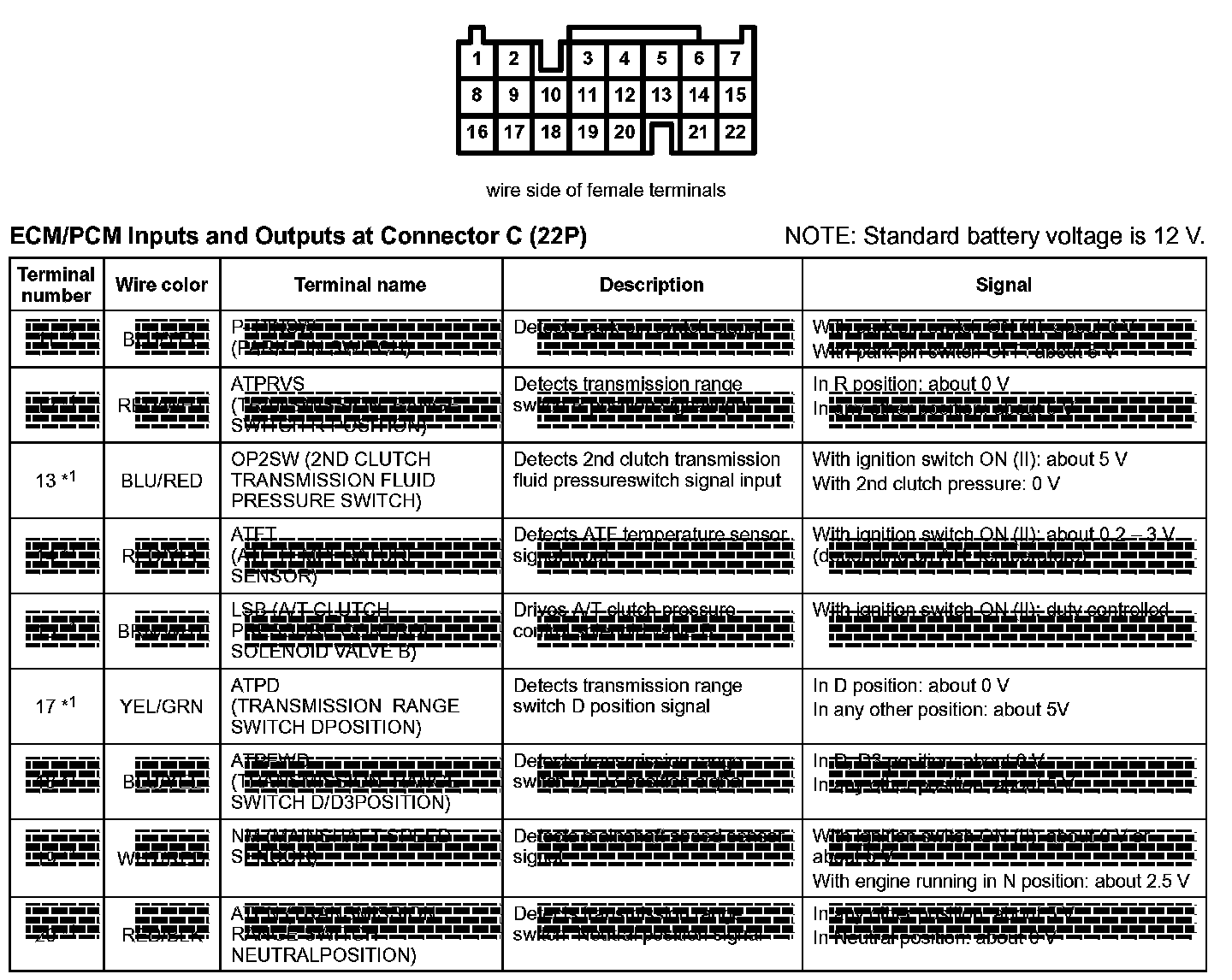 ECM/PCM Inputs And Outputs At Connector C (22P) Part 1: