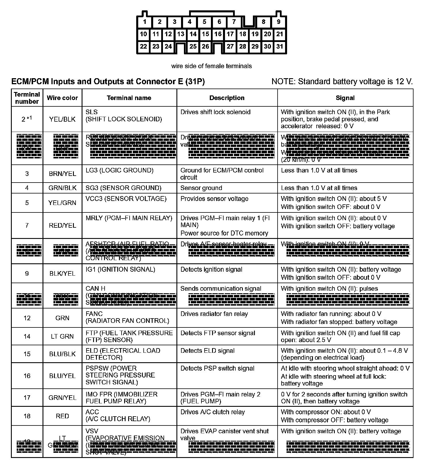 ECM/PCM Inputs And Outputs At Connector E (31P) Part 1: