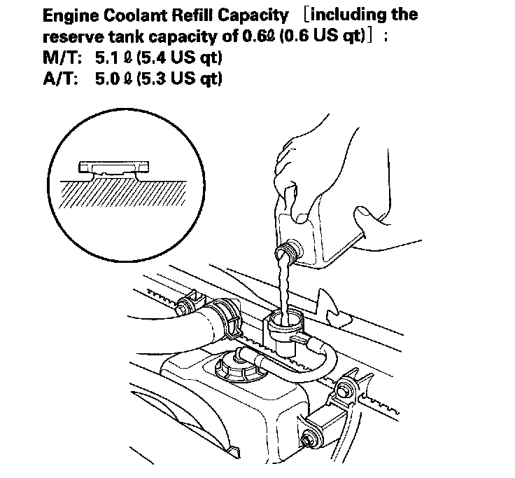 7. Pour Honda All Season Antifreeze/Coolant Type 2 into the radiator up to the base of the filler neck.