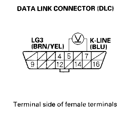 15. Measure voltage between DLC terminals No.5 and No.7.