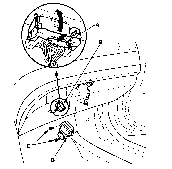 3. Remove the bolts (C), and the throttle actuator control module (D).