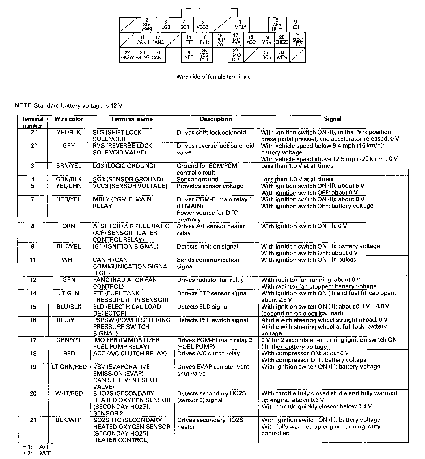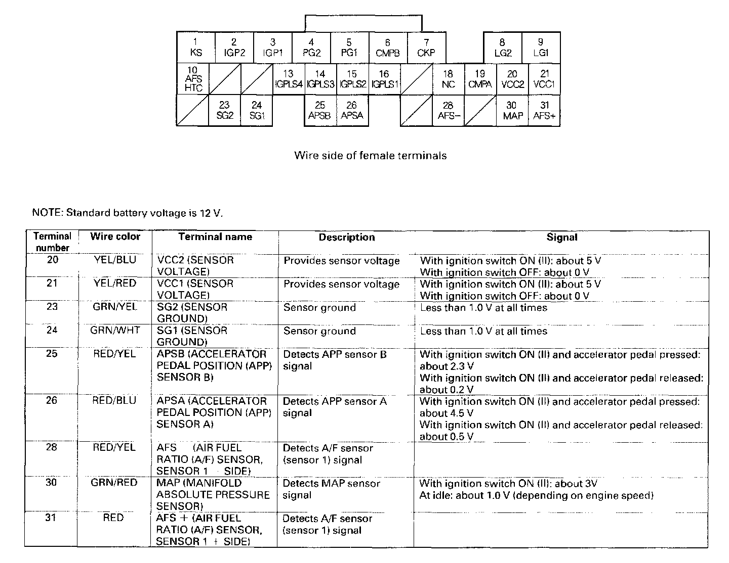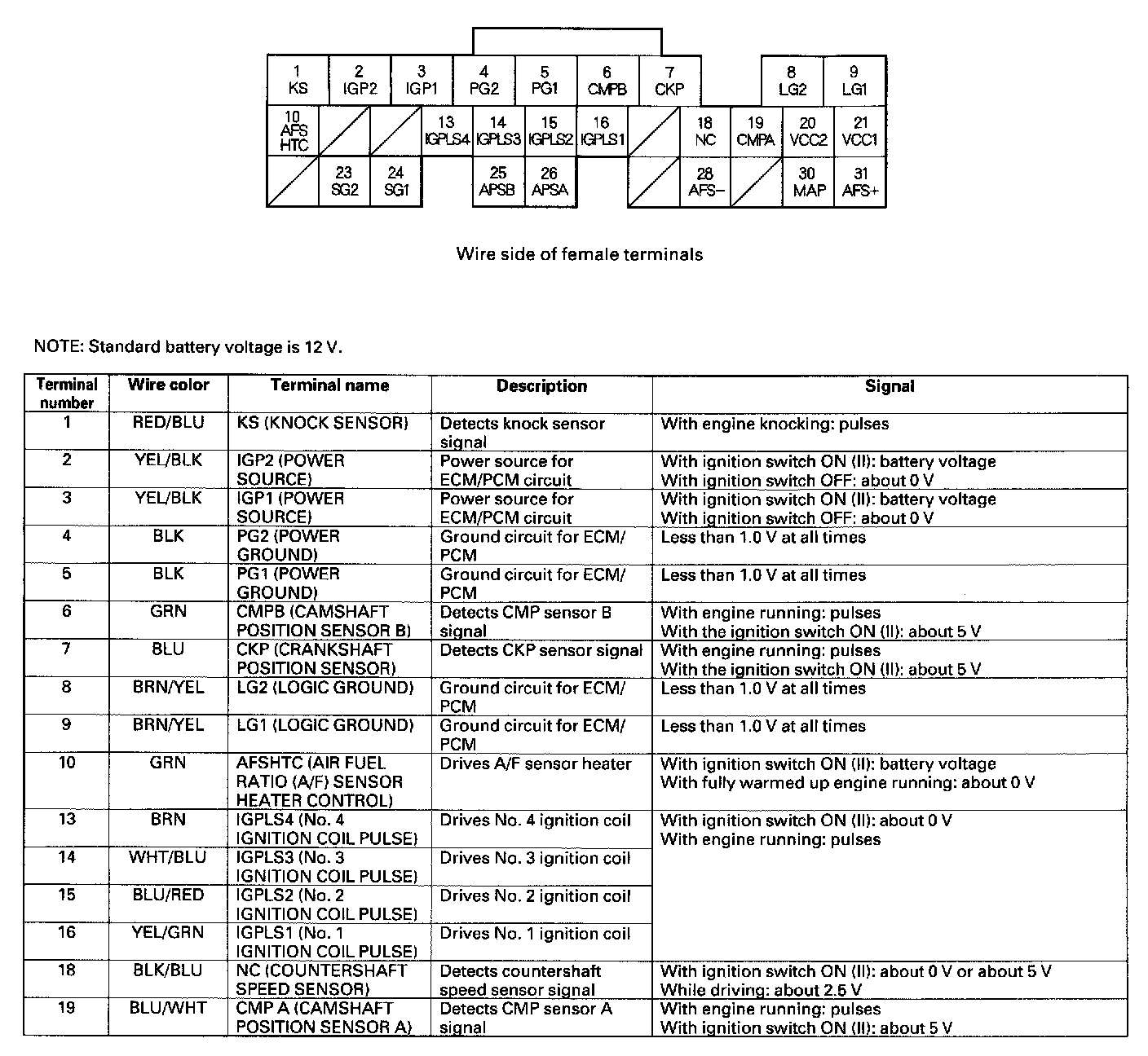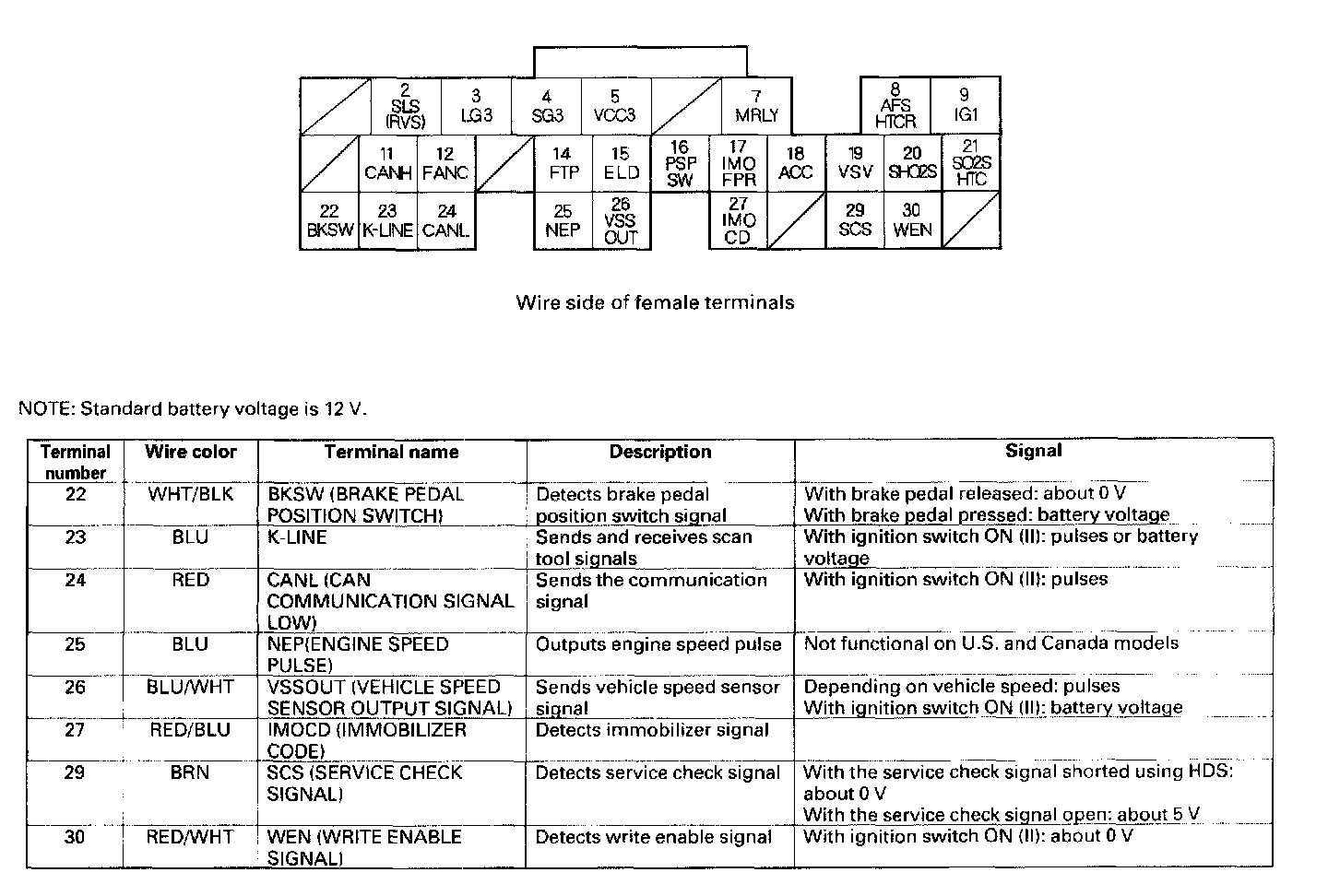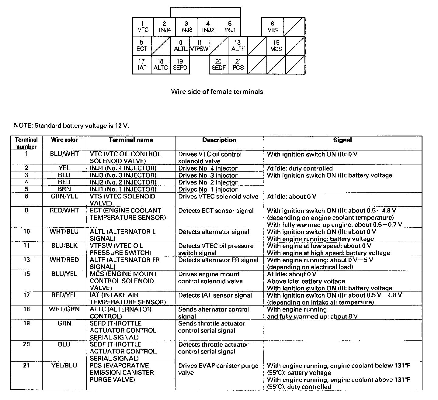 Home >> Acura >> 2004 >> TSX L4-2.4L >> Repair and Diagnosis >> Powertrain Management >> Computers and Control Systems >> Engine Control Module >> Testing and Inspection >> Pinout Values and Diagnostic Parameters
