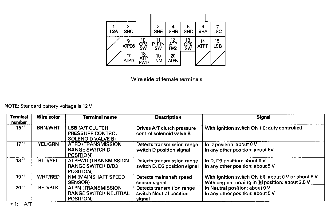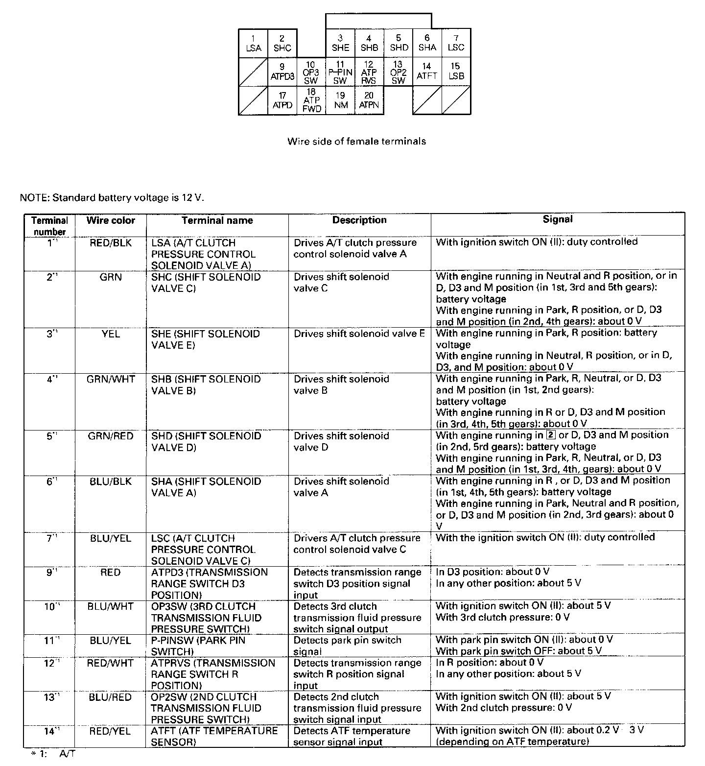 PCM Inputs And Outputs At Connector C (22P) Part 1: