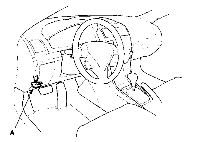 2. Connect the HDS or the Honda Interface Module (HIM) to the data link connector (DLC) (A) located under the driver's side of the dashboard.