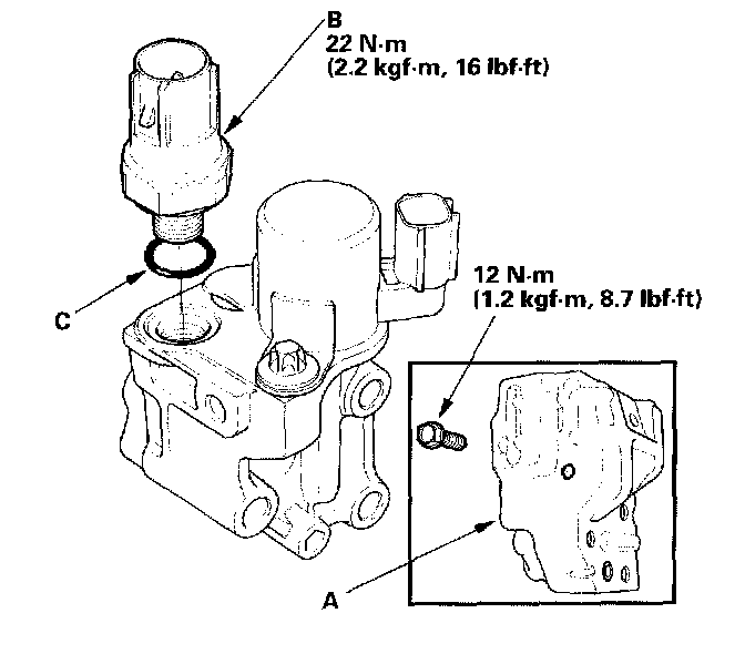 4. Install the switch in the reverse order of removal with a new O-ring (C).