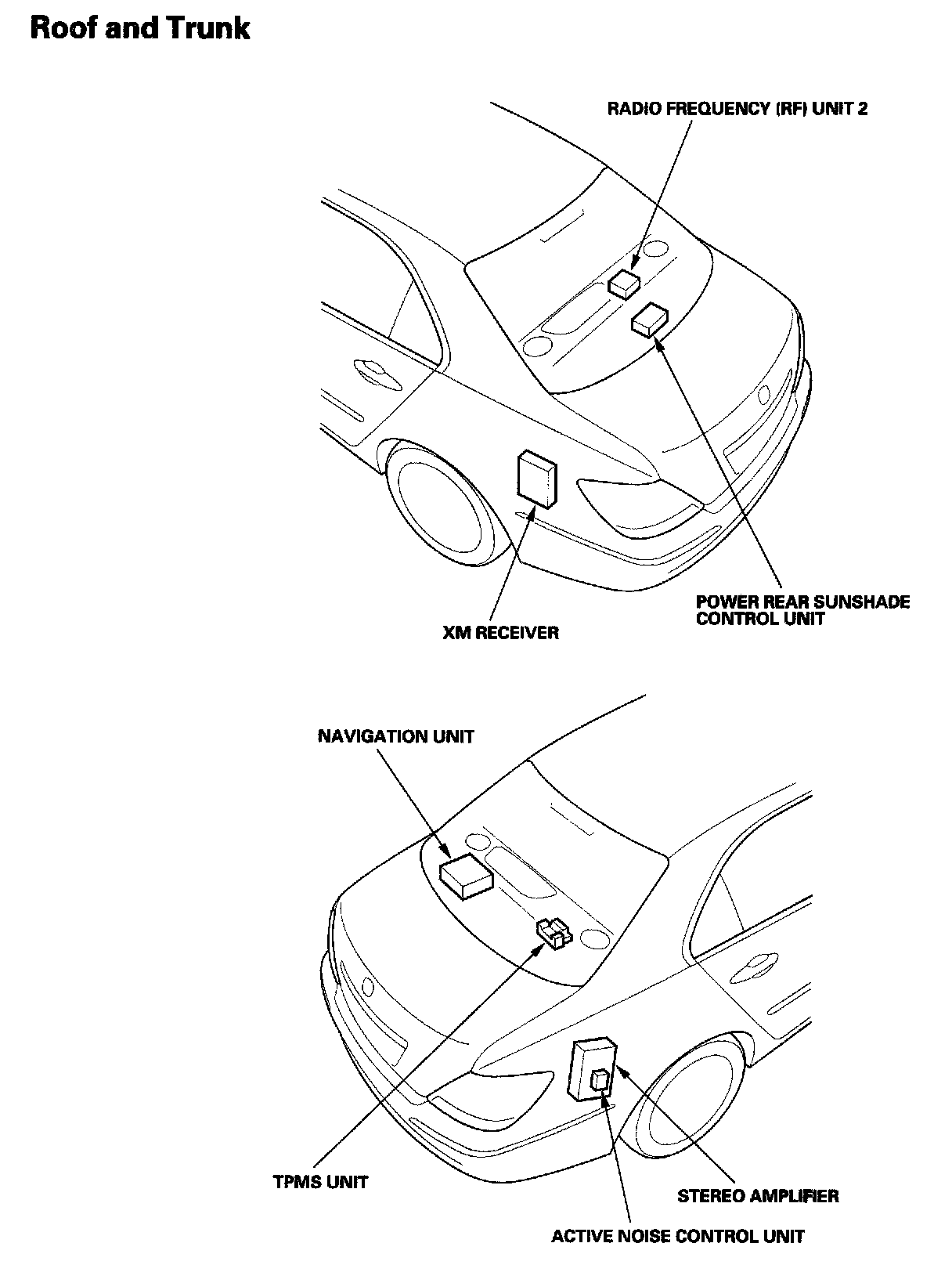 Relay And Control Unit Locations - Roof And Trunk:
