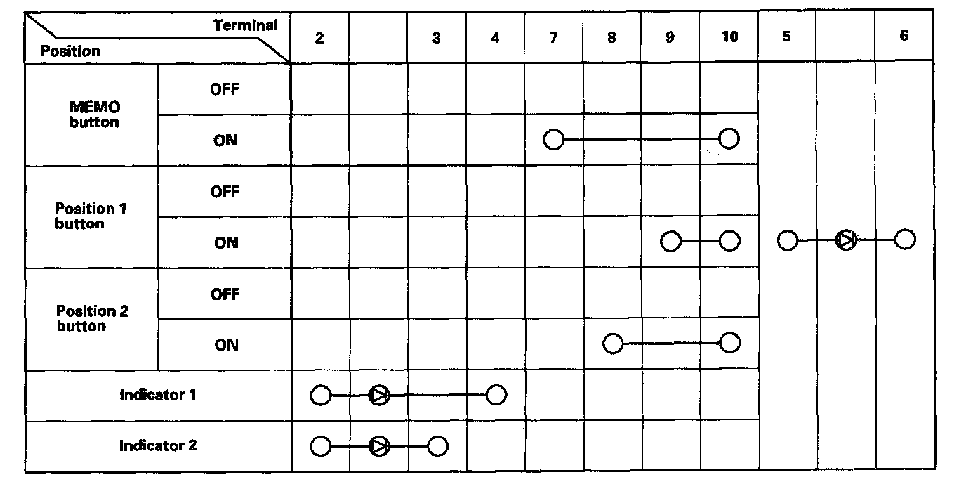 4. Check for continuity between the terminals in each switch position according to the table.