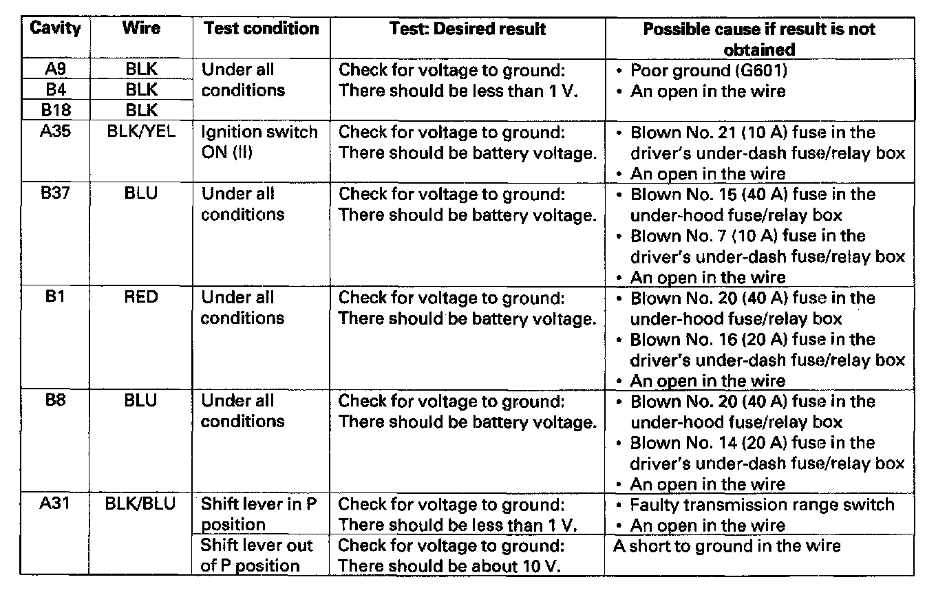 Home >> Acura >> 2005 >> RL V6-3.5L >> Repair and Diagnosis >> Body and Frame >> Seats >> Memory Positioning Systems >> Memory Positioning Module >> Testing and Inspection
