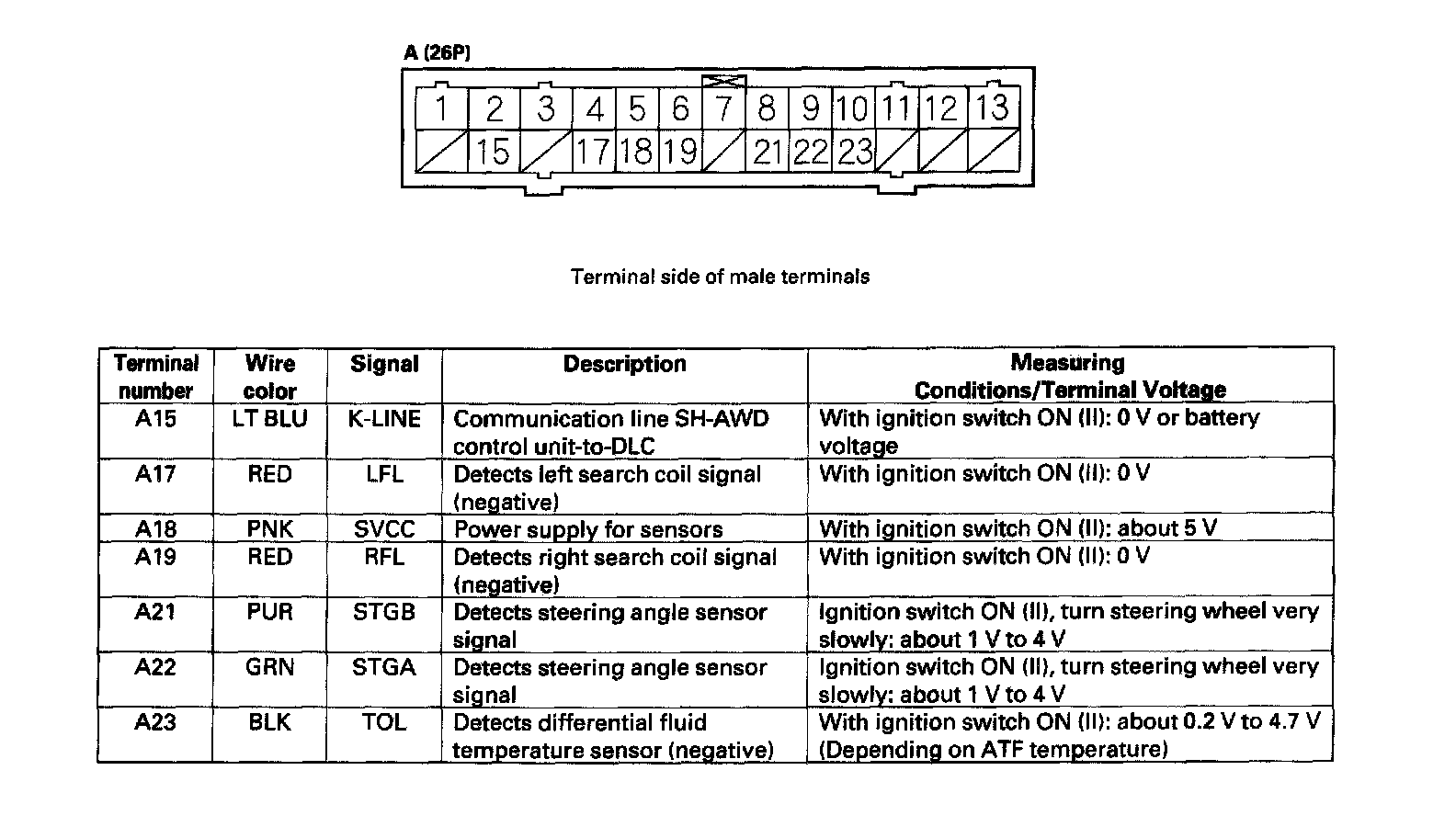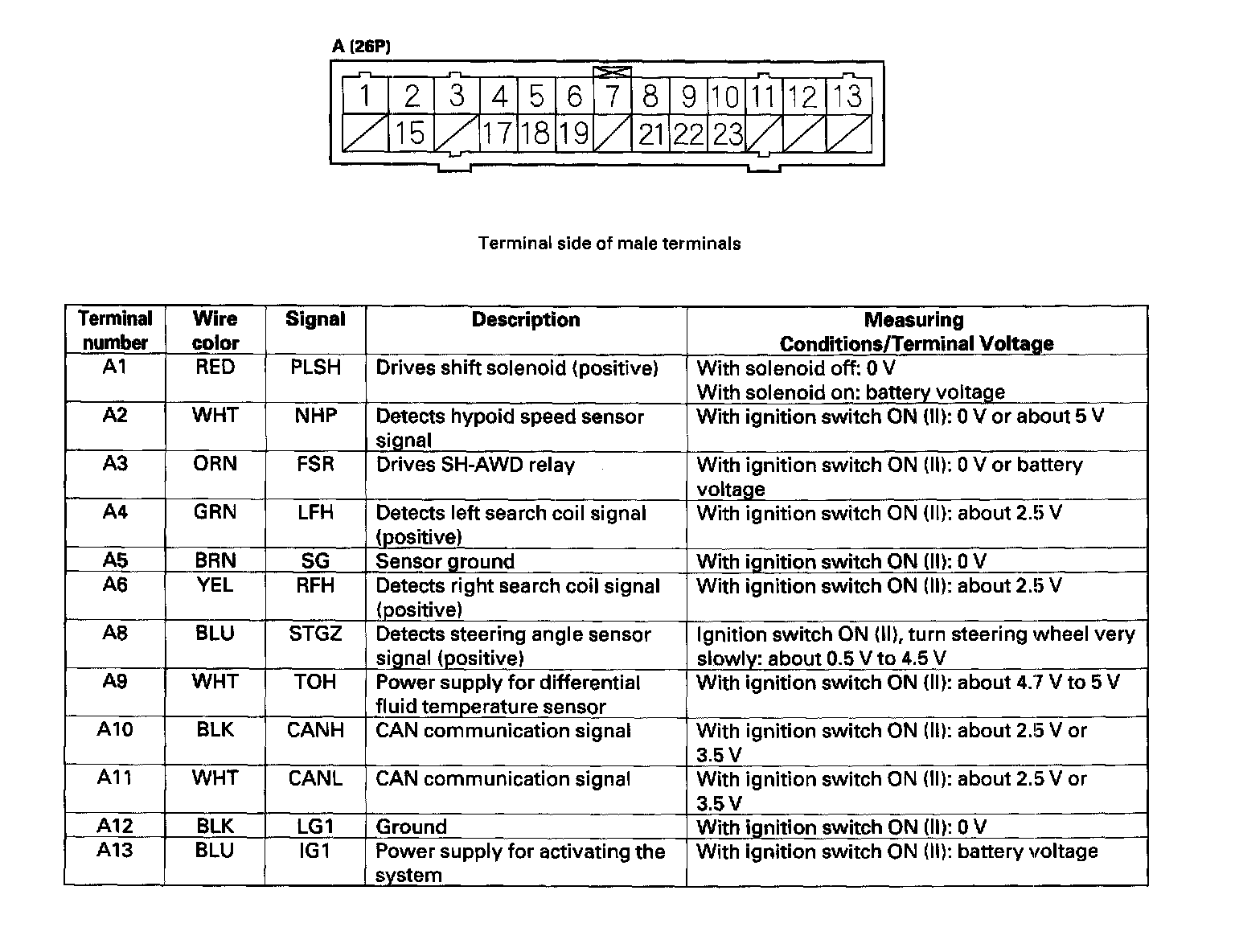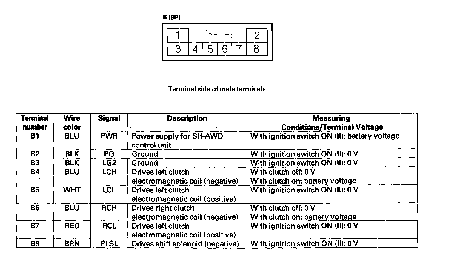 SH-AWD Control Unit Connector Terminal Locations