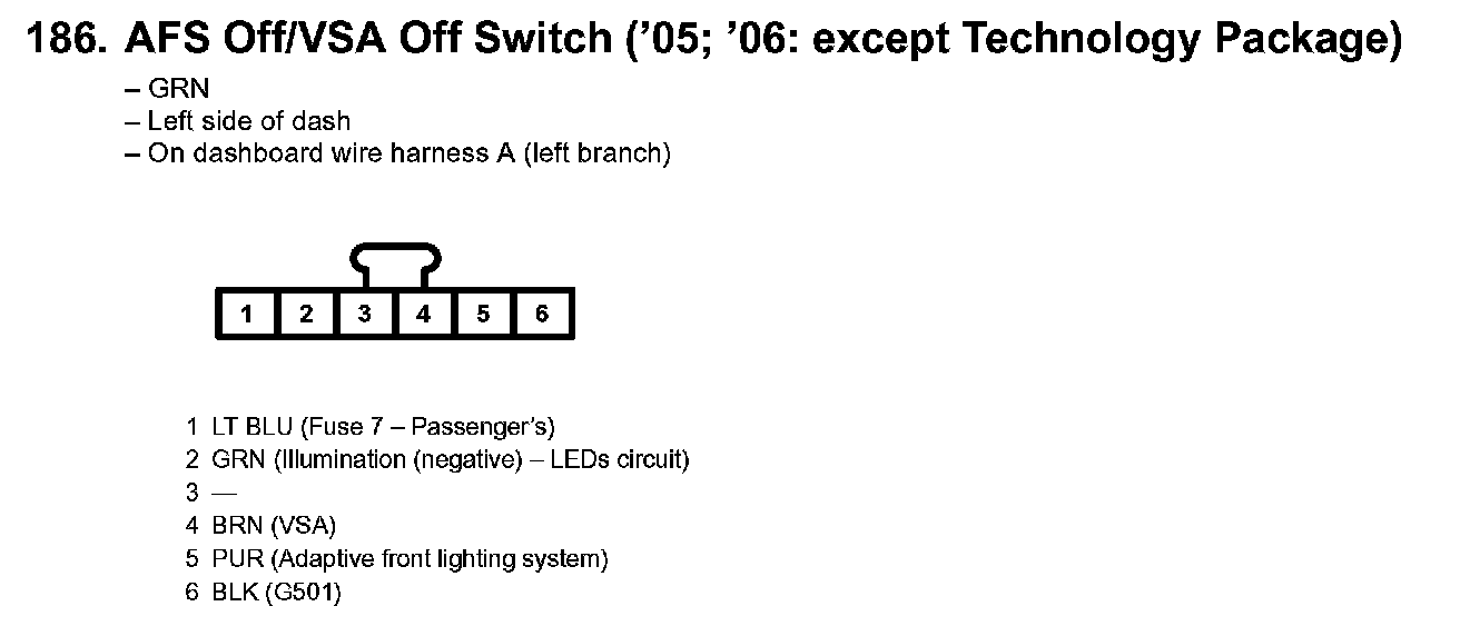 186. AFS Off/VSA Off Switch ('05; '06: Except Technology Package):