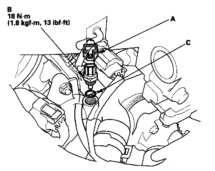 5. Install the sensor in the reverse order of removal with a new O-ring (C). Then refill the radiator with engine coolant.