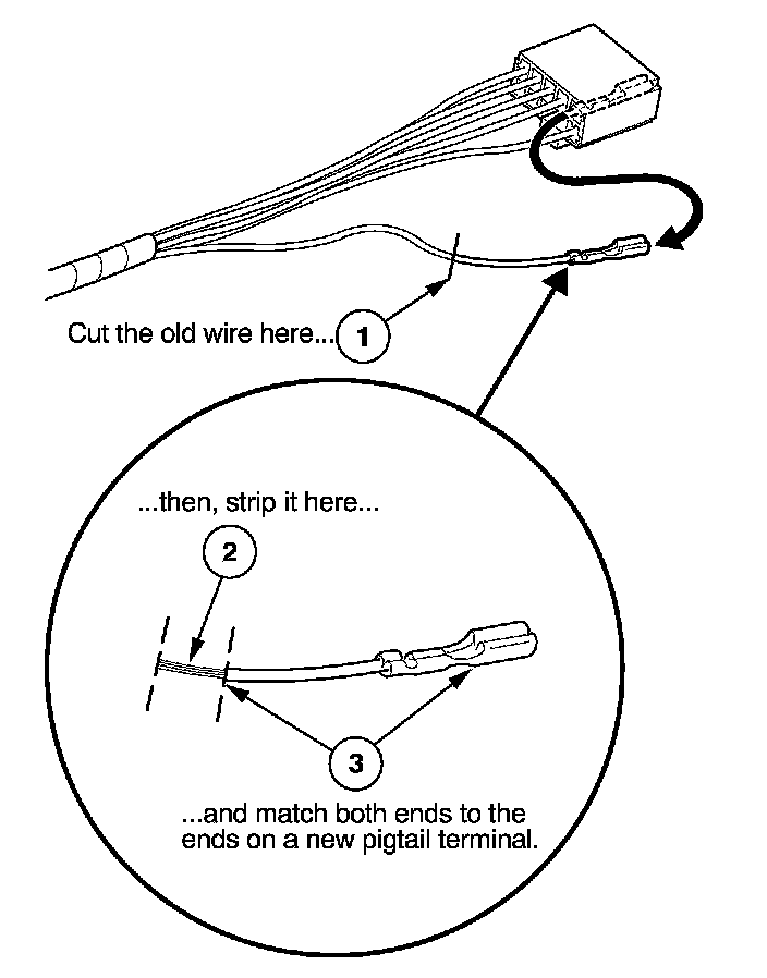 3. Select a pigtail terminal that matches the original wire at both ends (same kind of terminal and same diameter bare wire).