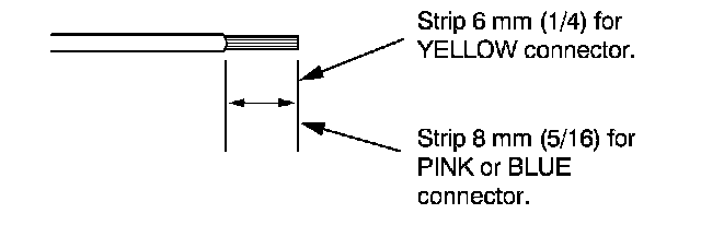 7. If you are using a yellow splice connector, strip about 6 mm (1/4 inch) of insulation off the ends of both wires. If you are using a pink or blue splice connector, strip off about 8 mm (5/16 inch) of insulation.