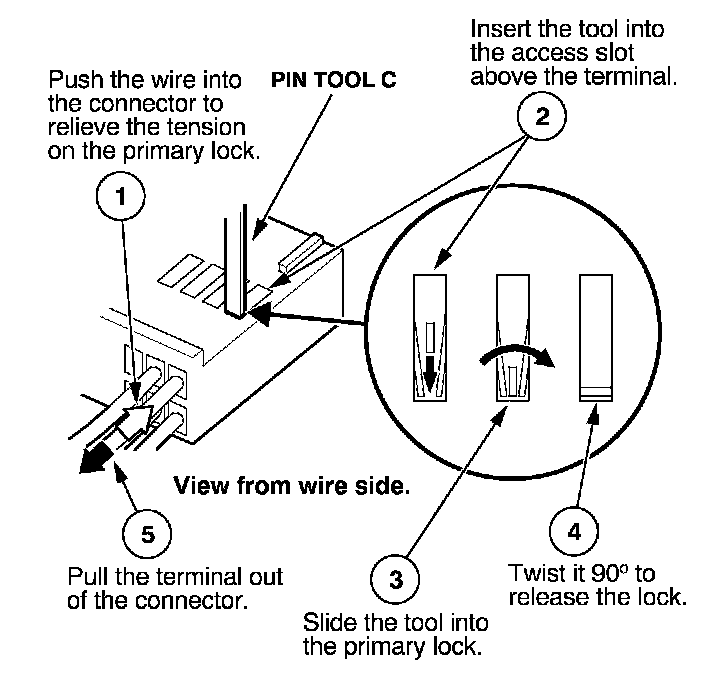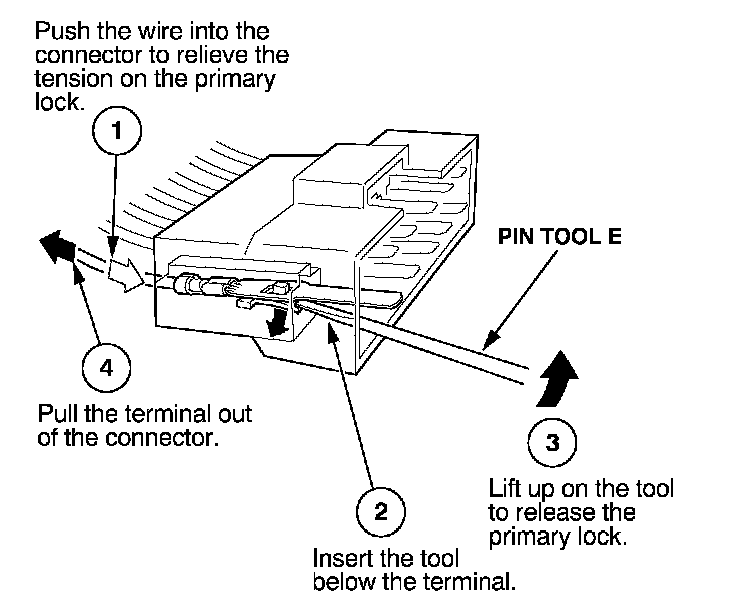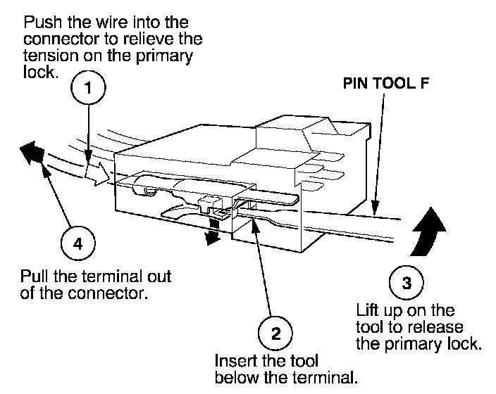 Before you begin, inspect the wire you are about to repair for damage and length. Make sure the wire will be long enough to make a terminal repair without stretching it when you reinstall the terminal in the connector. If the wire is too short, or if access to the connector is too restricted to make a terminal repair, you may need to install a pigtail terminal (a short length of wire with a factory-crimped terminal on it). Refer to HOW TO INSTALL PIGTAIL TERMINALS.