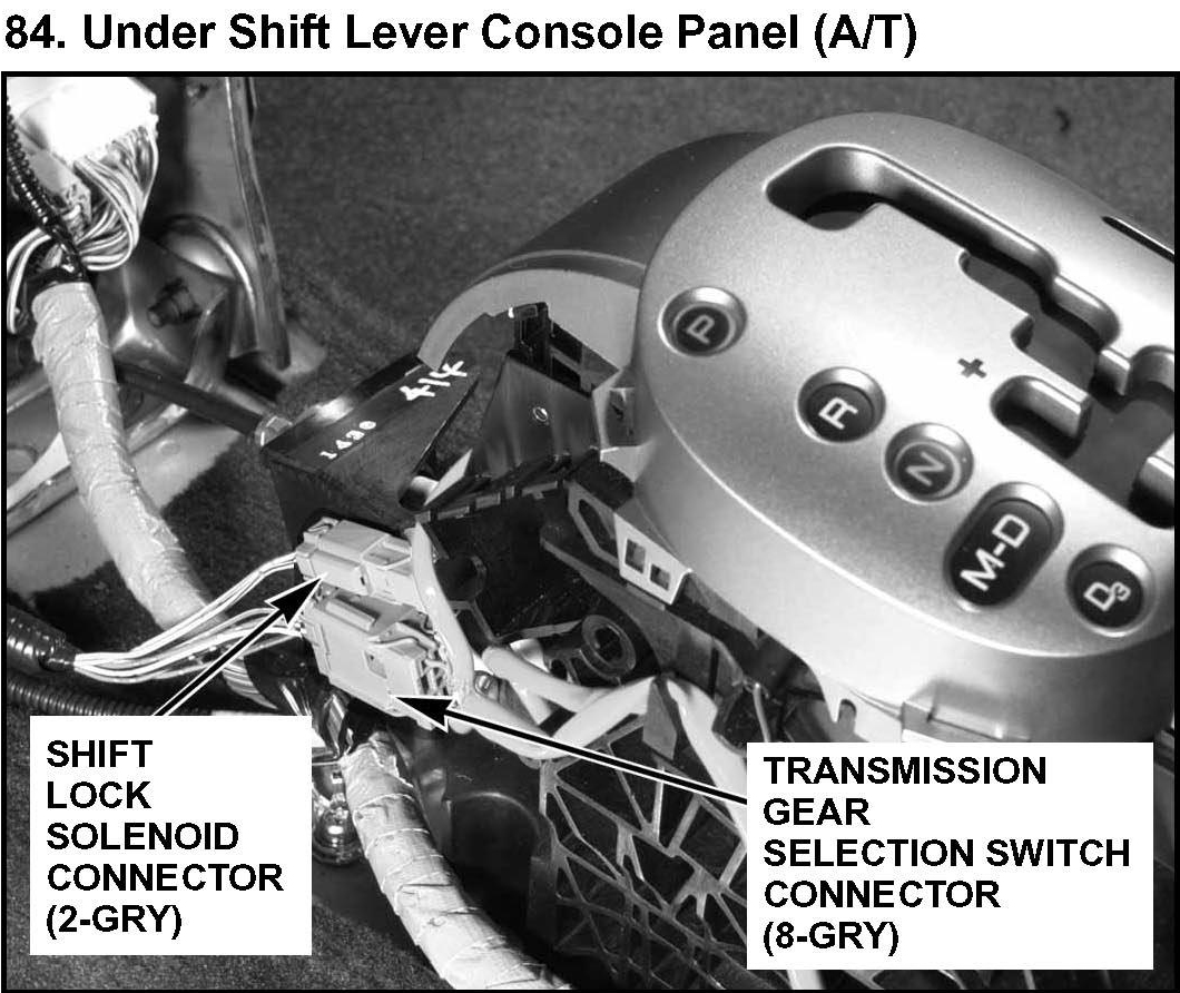 84. Under Shift Lever Console Panel (A/T):