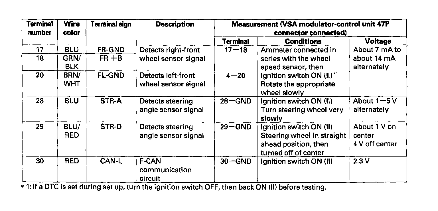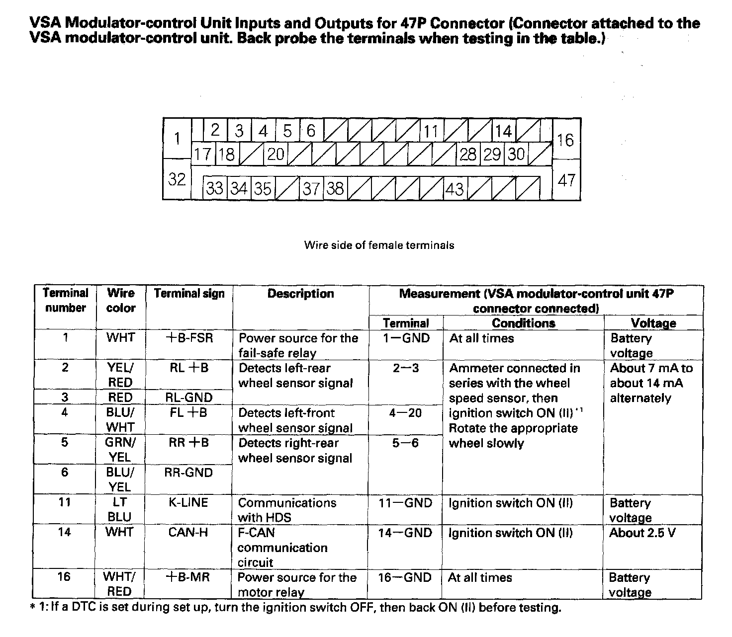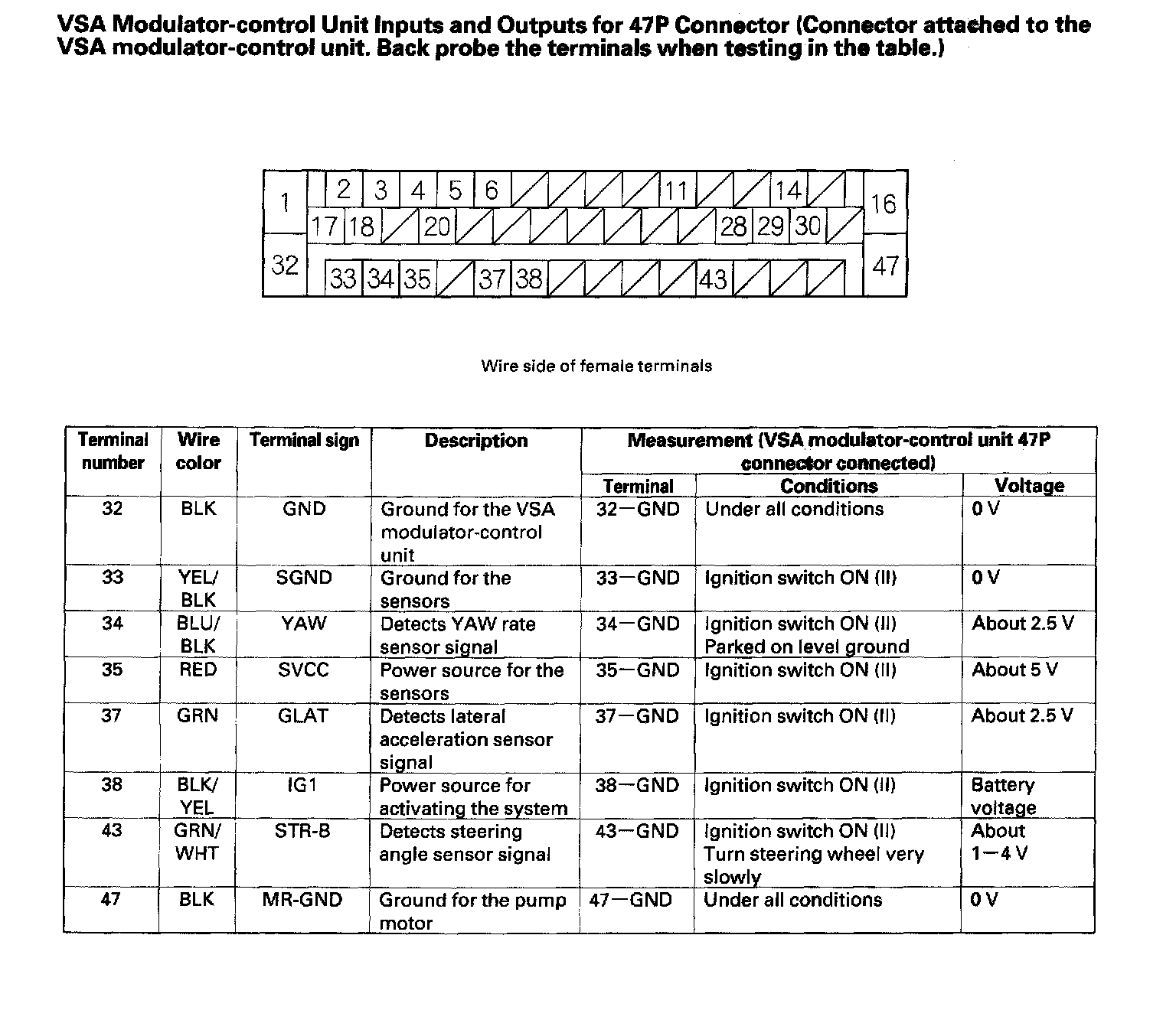 VSA Modulator-control Unit Inputs and Outputs for 47P Connector: