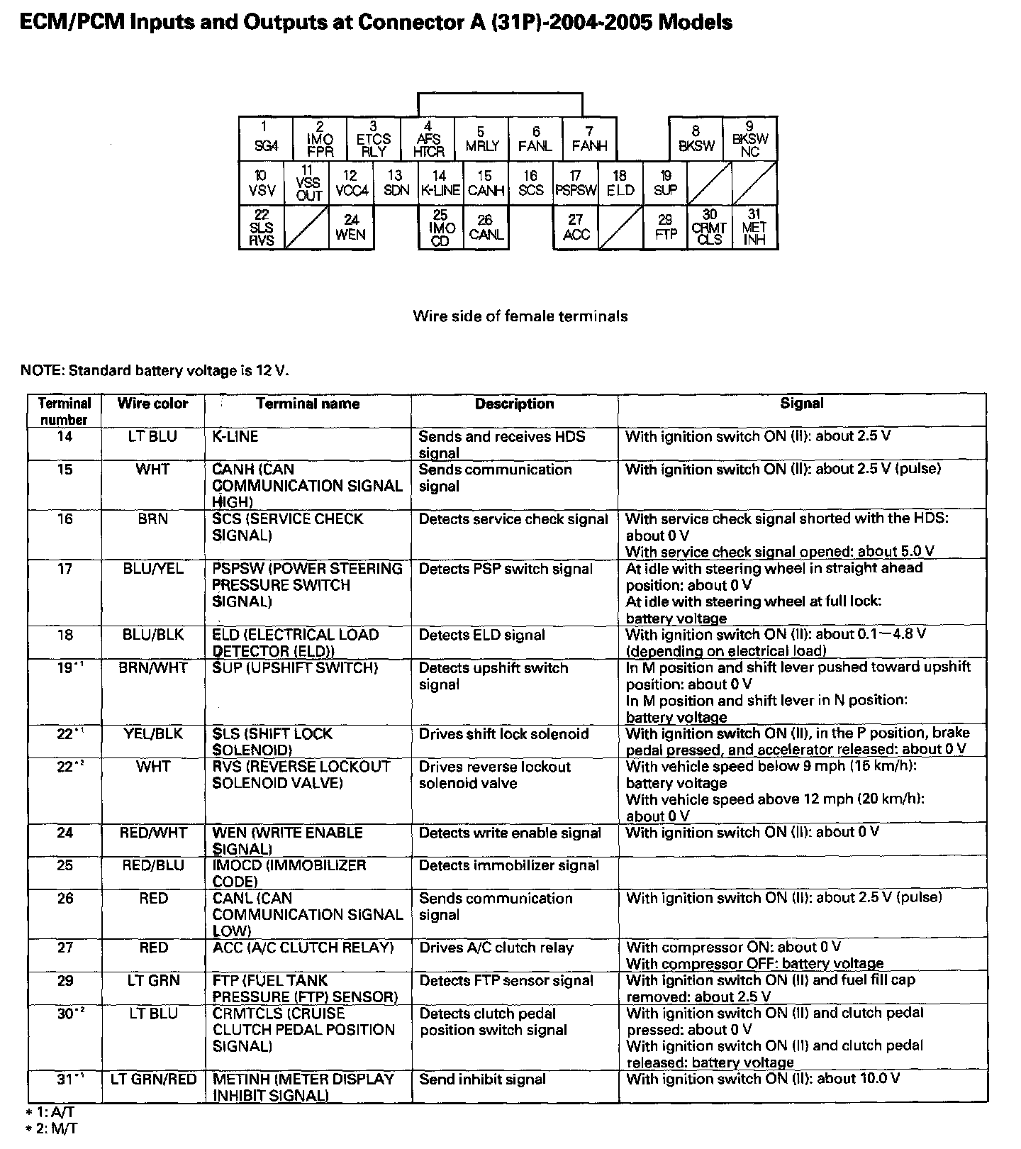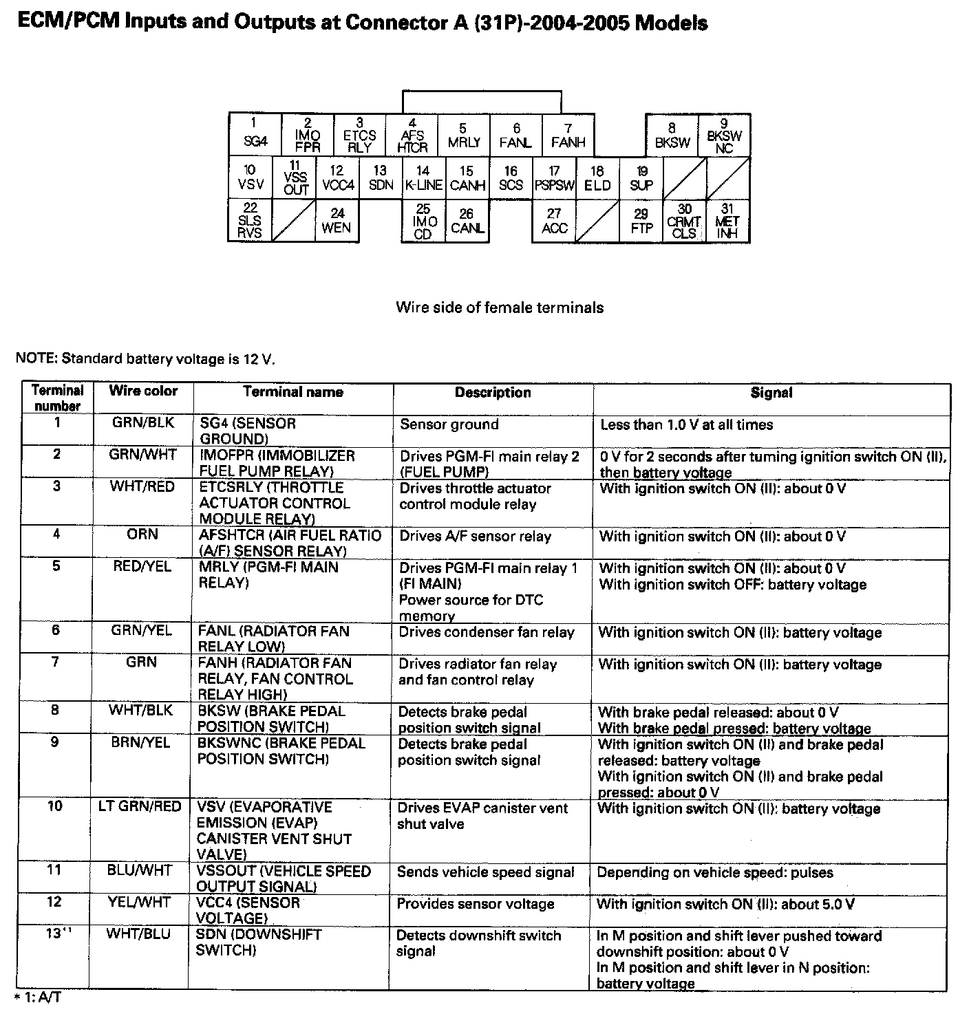 ECM/PCM Inputs And Outputs At Connector A (31P) Part 1: