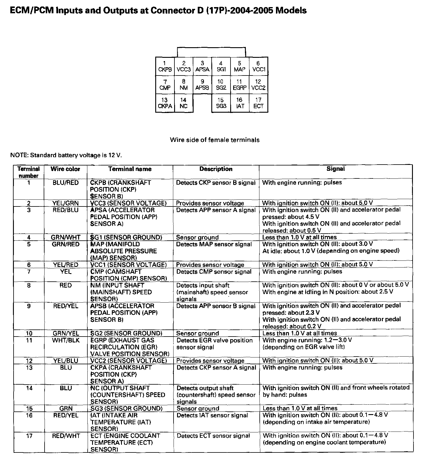 ECM/PCM Inputs And Outputs At Connector D (17P):