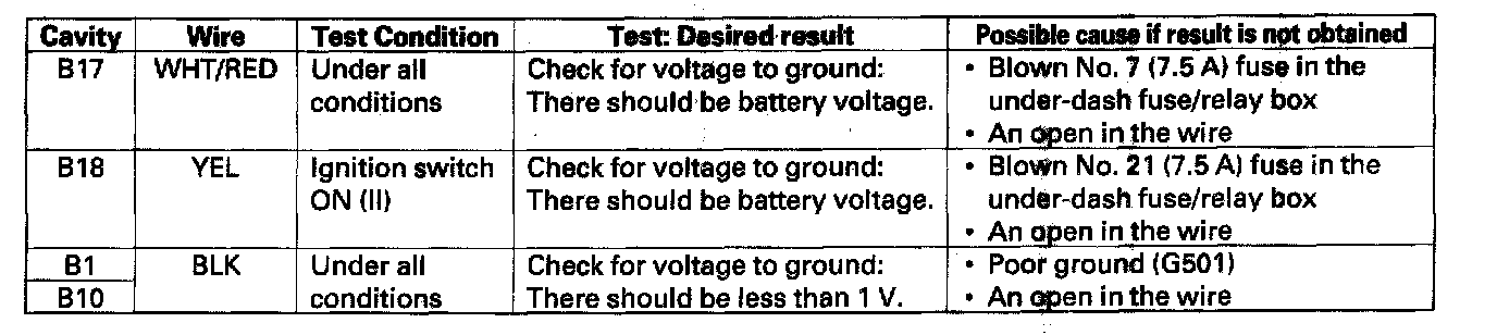 5. Disconnect the 1SP connector from the gauge control module, and make these input tests at the connector.