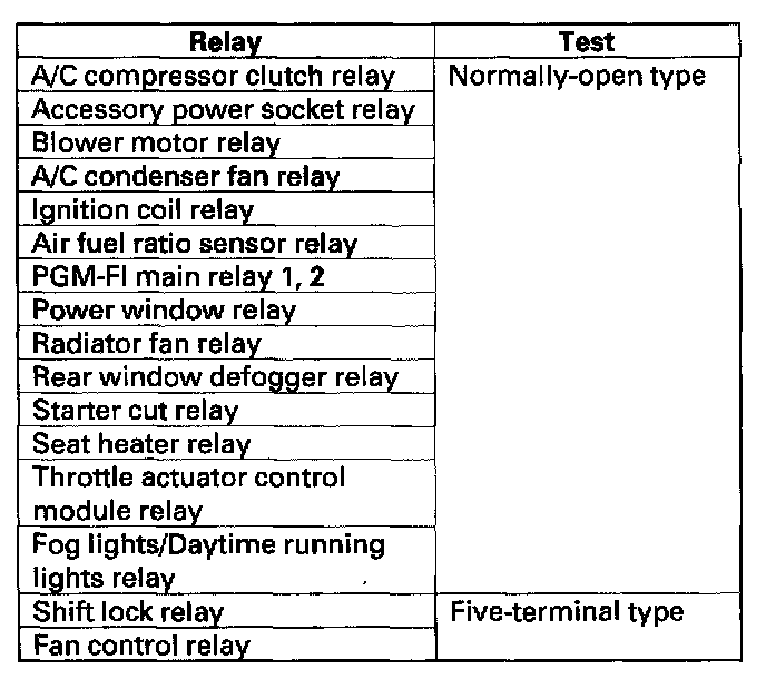 Power Relay TestUse this chart to identify the type of relay, then do the test listed for it.