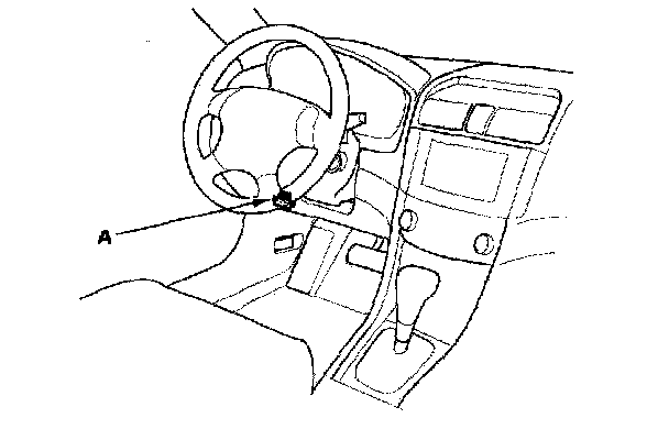 2. Connect the HDS or the Honda interface module (HIM) to the DLC (A) located under the left end of the dash.