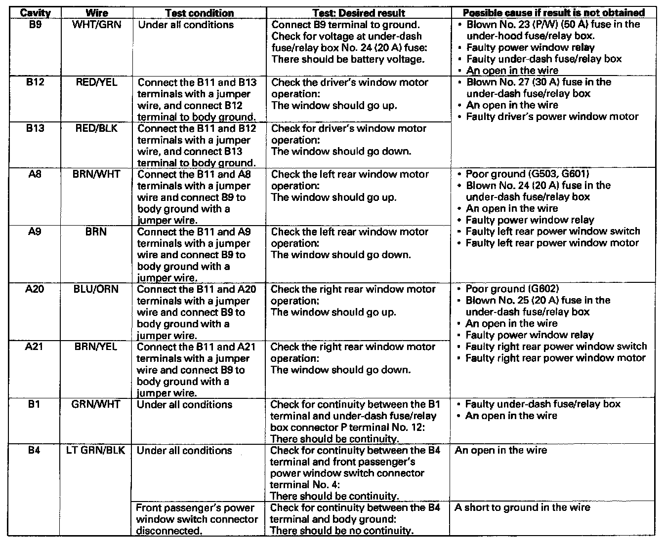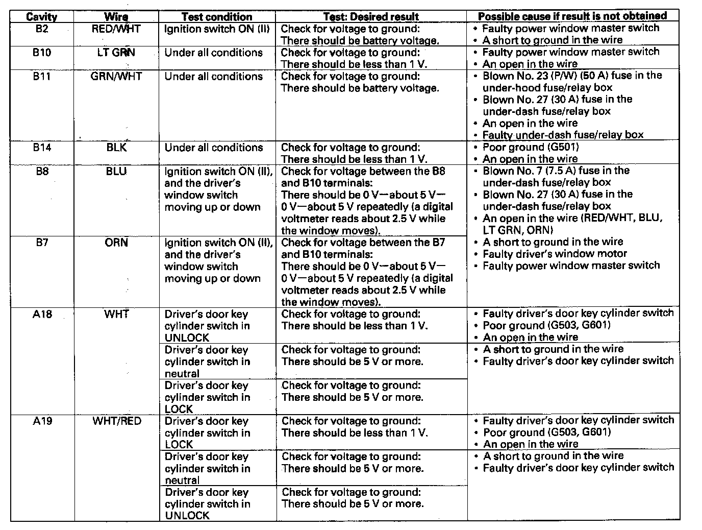 - If all the input tests prove OK, the control unit must be faulty; replace the power window master switch.
