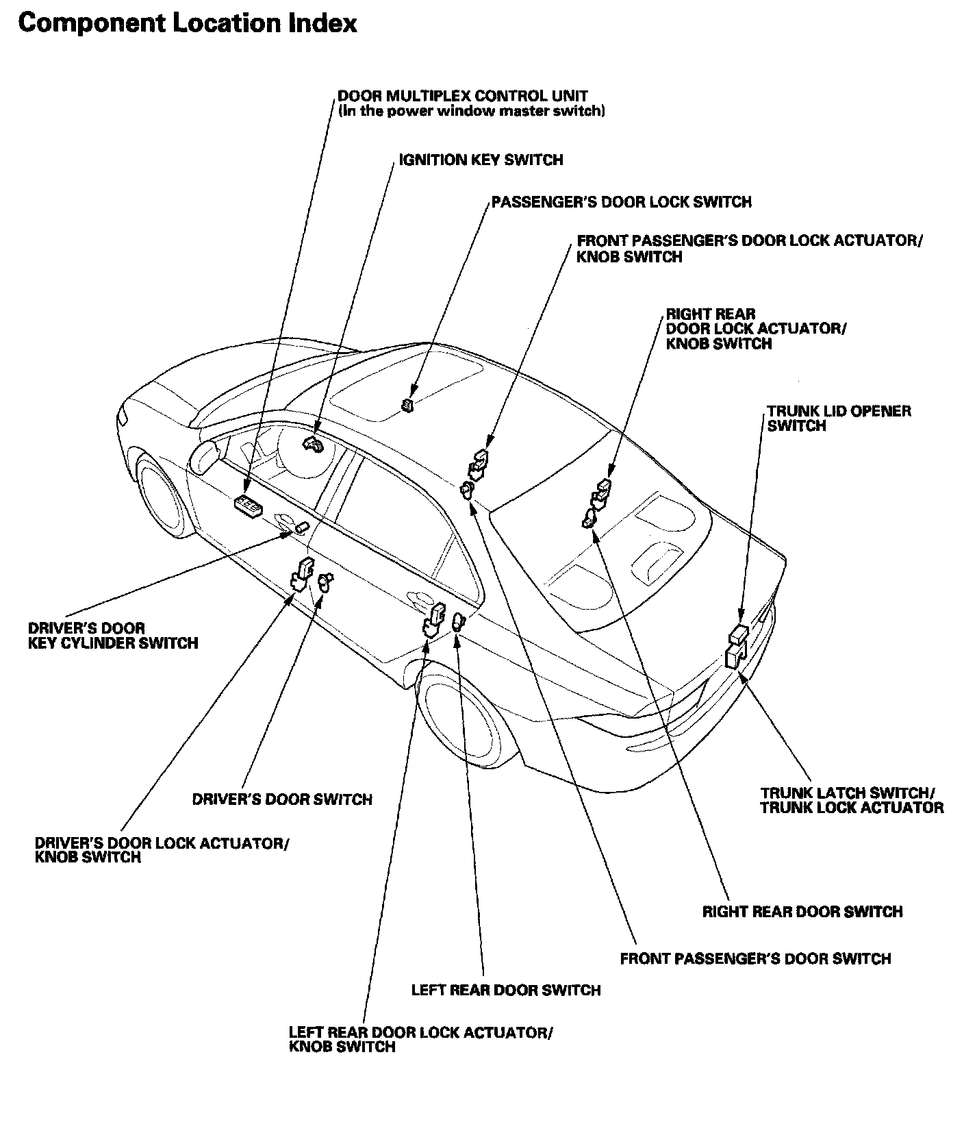 Keyless/Power Door Locks/Security System - Component Location Index:
