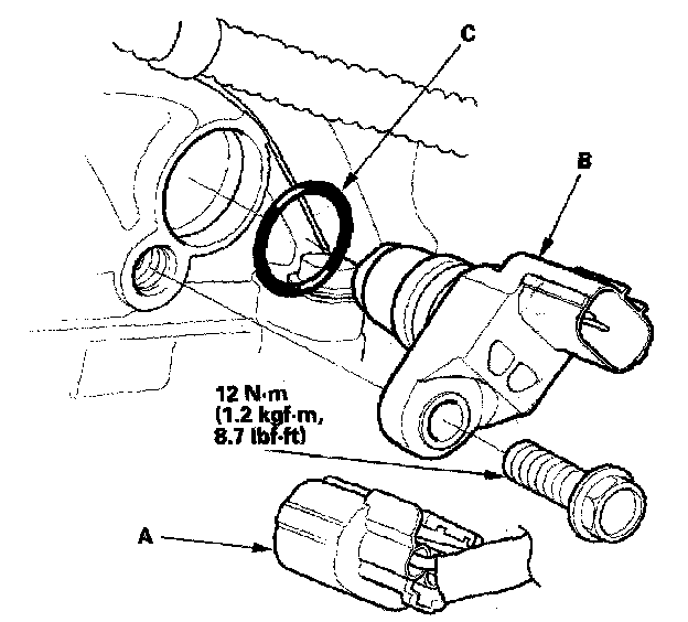 5. Install the sensor in the reverse order of removal with a new O-ring (C).