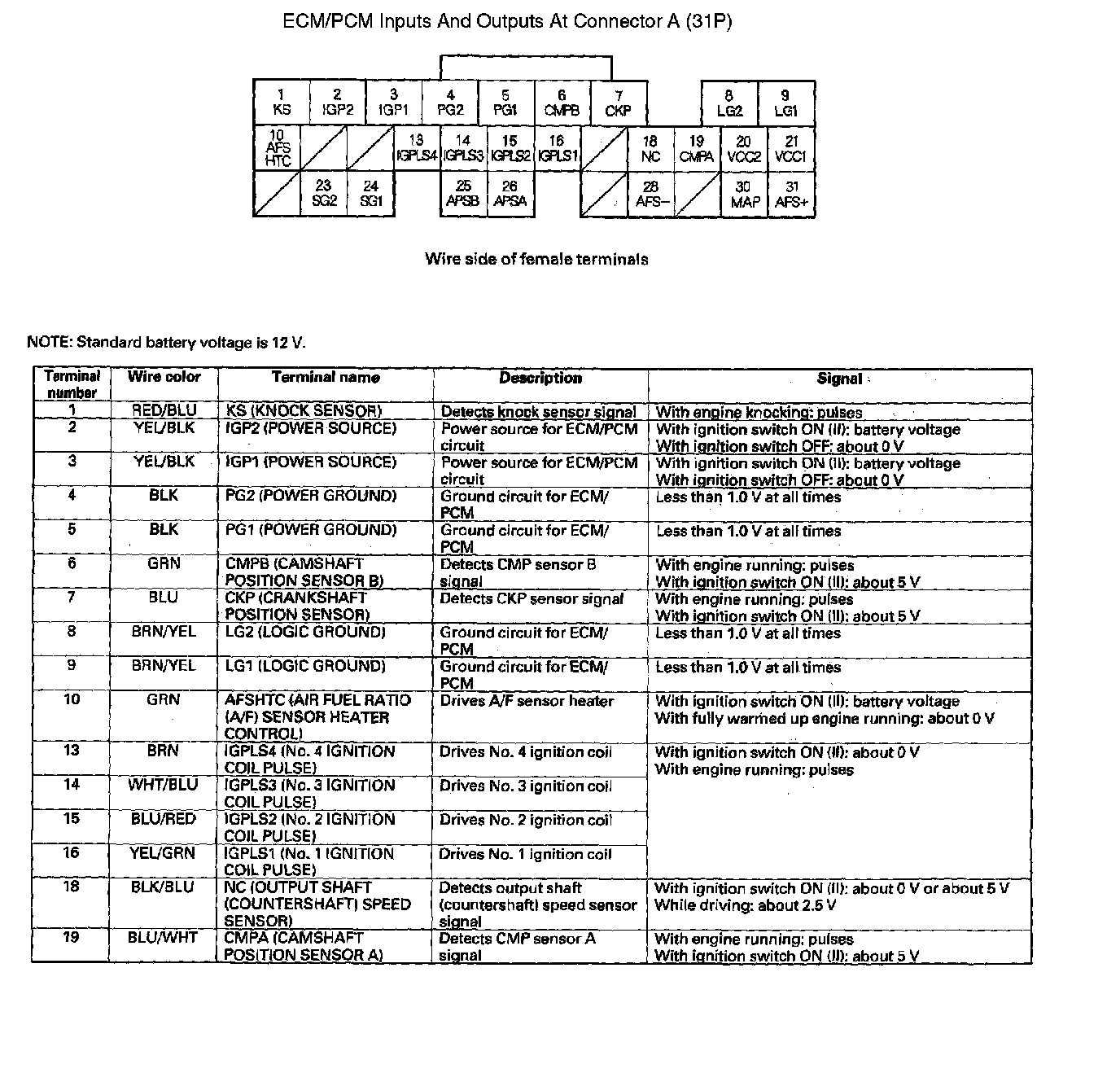 ECM/PCM Inputs And Outputs At Connector A (31P) Part 1: