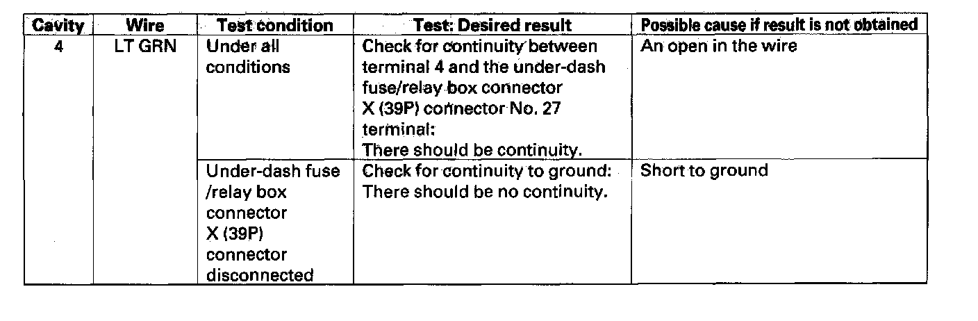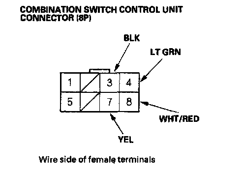 4. Reconnect the connector to the wiper/washer switch, and make these input tests at the connector.