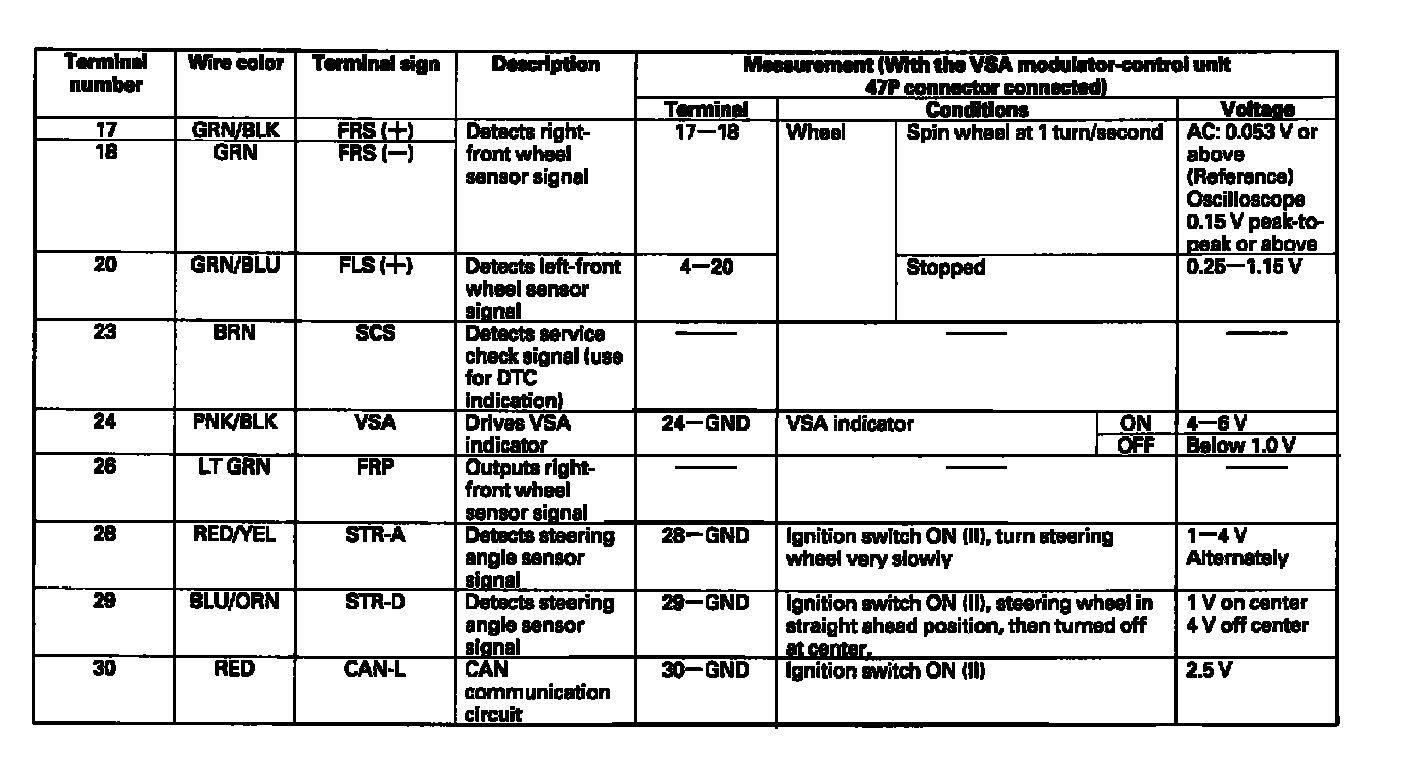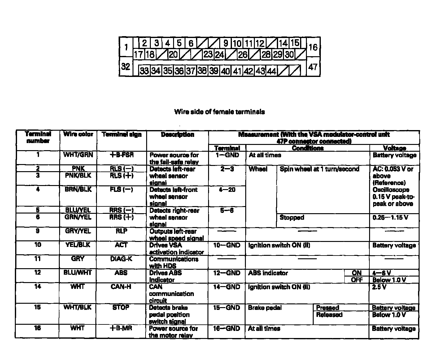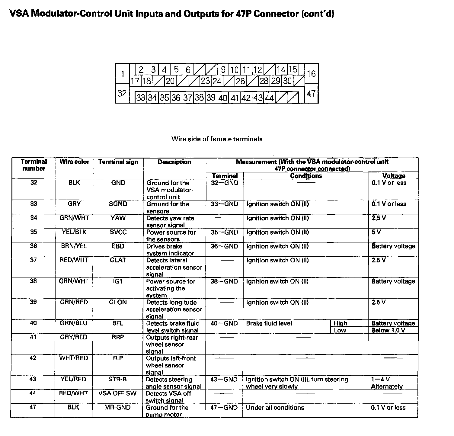 VSA Modulator-Control Unit Inputs and Outputs for 47P Connector: