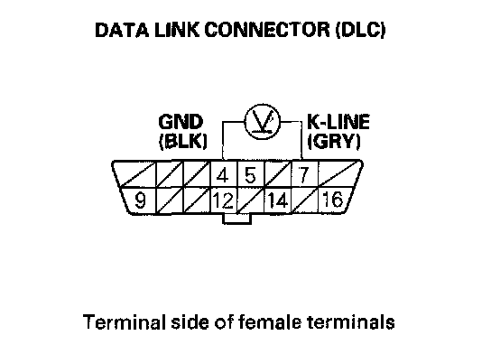 5. Measure voltage between DLC terminals No.5 and No.7.