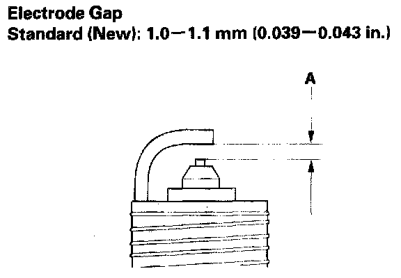 3. Do not adjust the gap (A) of iridium tip plugs; replace the spark plug if the gap is out of specification.