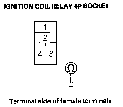 6. Check for continuity between ignition coil relay 4P socket terminal No. 3 and body ground.