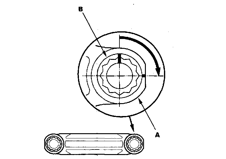 Mark the connecting rod (A) and bolt head (B) as shown.